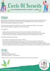 Circle of Security Parenting seeks to strengthen attachment relationships between caregivers and children. While the program predominantly focuses on infants and younger children, the concepts are suitable for caregivers of children of all ages.